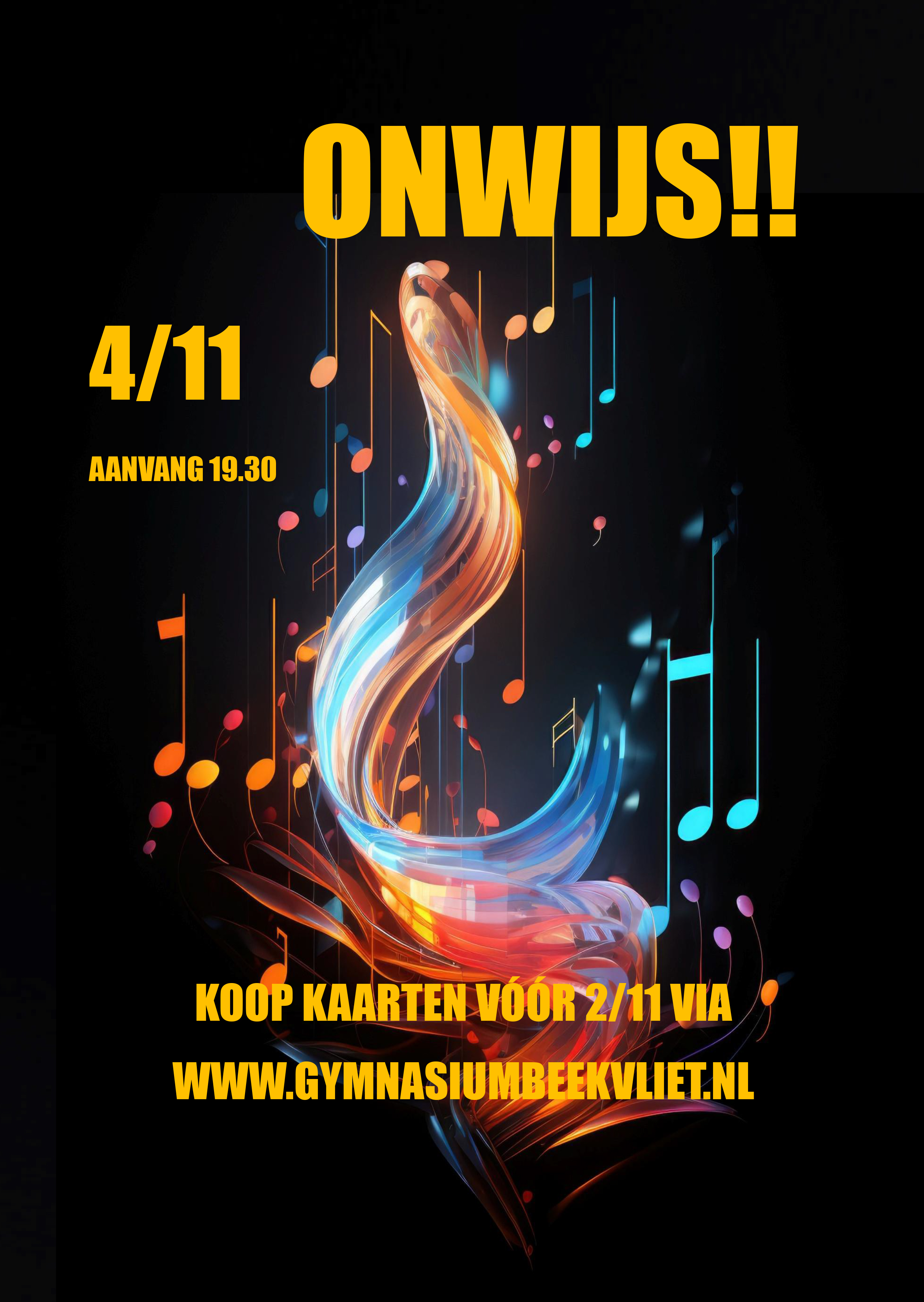 Op dinsdag 4 november wordt het podium opgebouwd voor het muzikale talent op Beekvliet. Leerlingen van jong tot oud laten zich van hun beste kant horen tijdens de muziekavond 'Onwijs!!'.