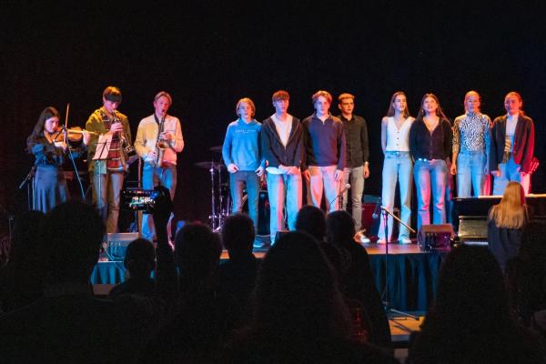 Gisteren gaf klas 5 een prachtig concert als onderdeel van hun schoolexamen muziek. De leerlingen met muziek in hun pakket speelden zelfgekozen stukken op piano, gitaar, drums, keyboard, saxofoon en viool – vaak gecombineerd met zang. Ook klas 4 mocht alvast een nummer uitvoeren.